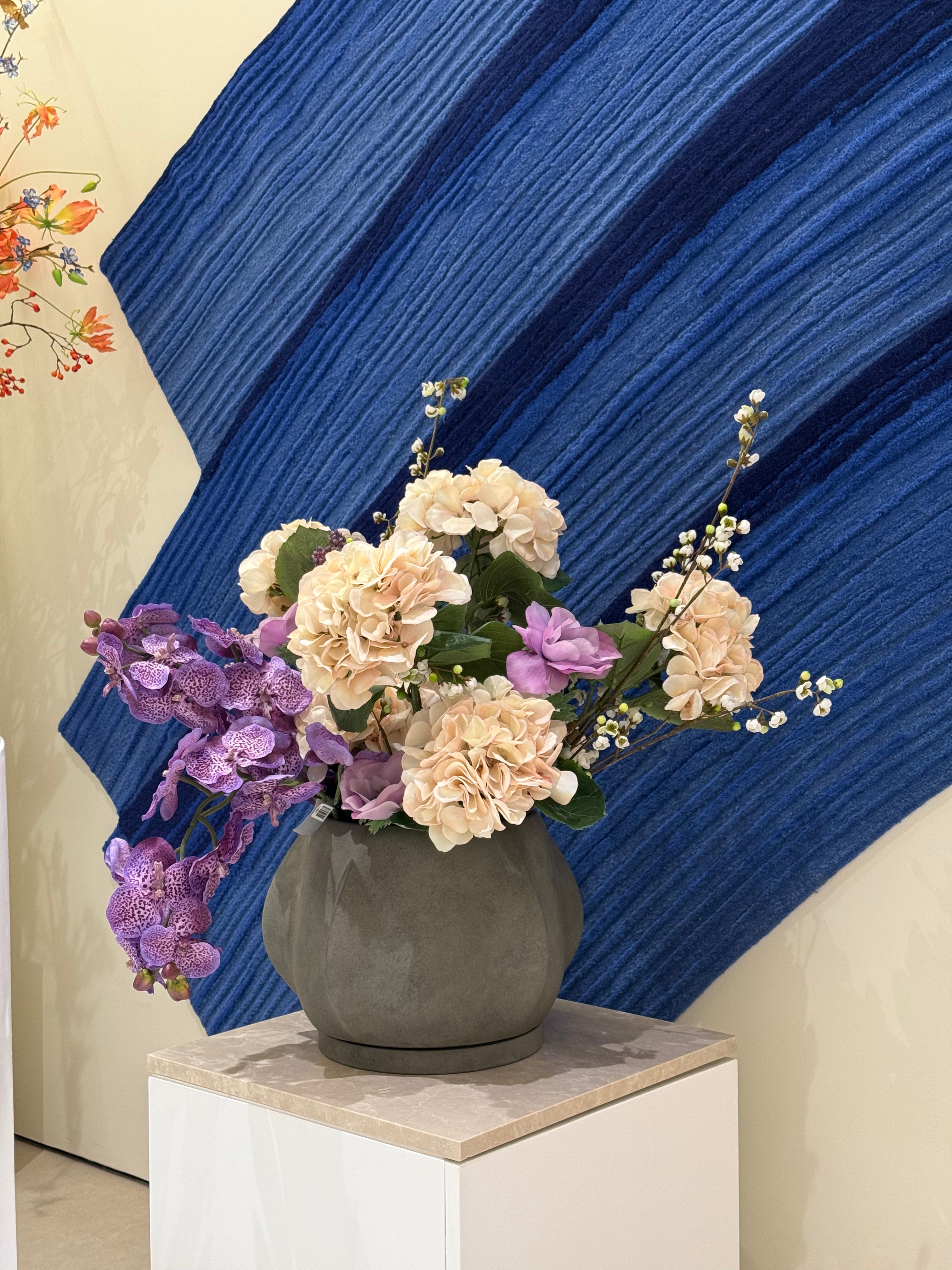 The Silk-ka botanicals introduce gentle, organic movement, while the 101 Copenhagen vessel anchors the composition with weight and calm authority.